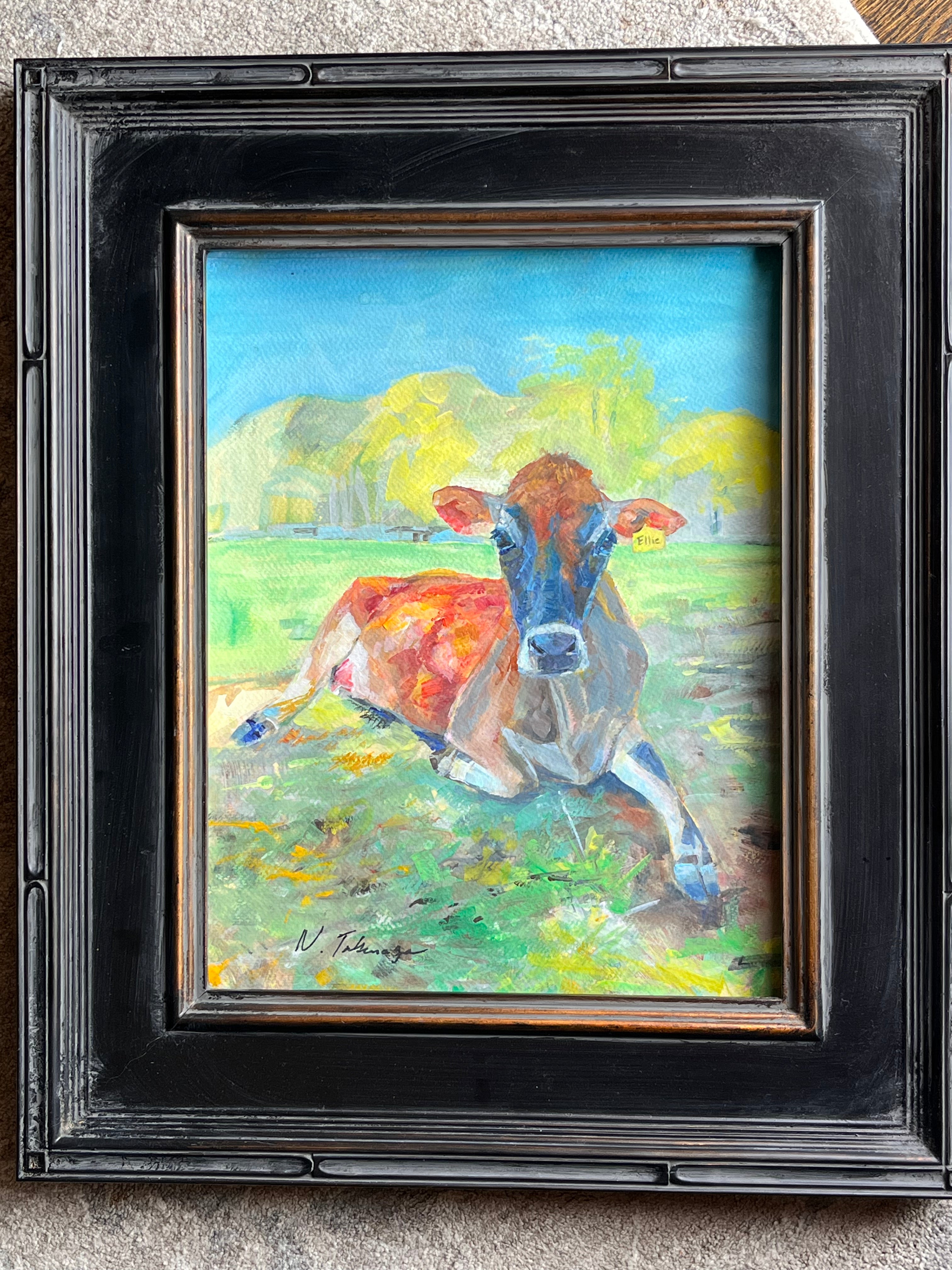 Ellie the Cow original in gouache 11x14